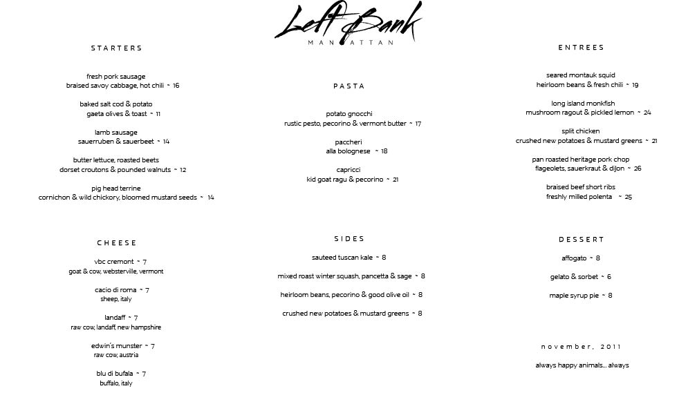 Home , Left Bank, West Village , leftbankmenu